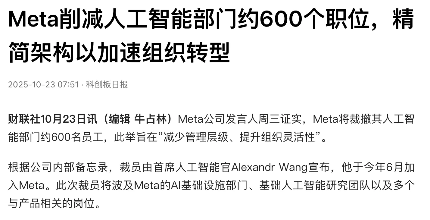 4、Meta削减人工智能部门约600个职位,精简架构以加速组织转型